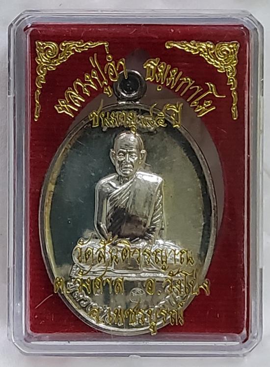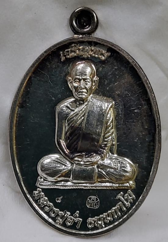 เหรียญเจริญพร หลวงปู่อ่ำ วัดสันติวรญาณ จังหวัดเพชรบูรณ์ เนื้อเงิน กล่องเดิม หมายเลข ๘