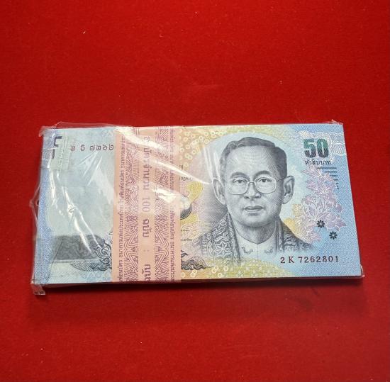 ธนบัตร 50 ยกแหนบ สภาพ UNC ไม่เคยแกะ (เคาะเดียว 5200)