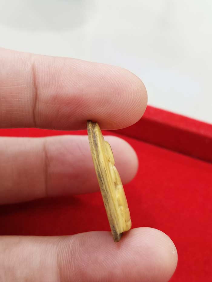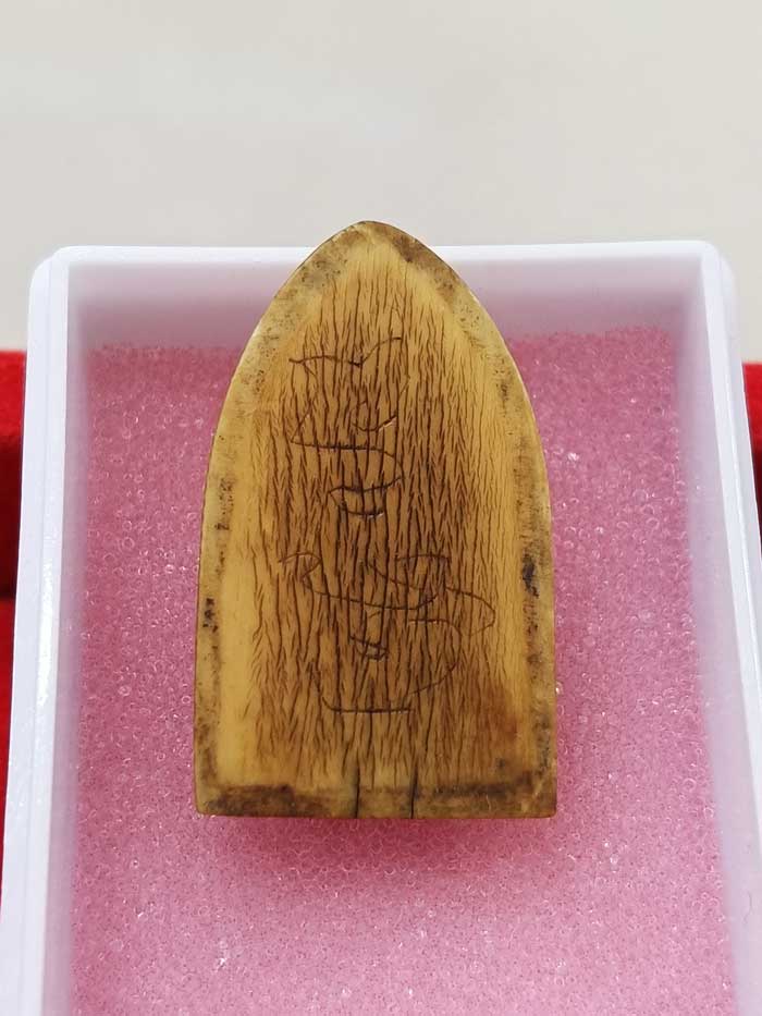 ชื่อพระเครื่อง วัดใจ 100 เดียวแดง ++ นางกวักงาแกะเก่า มีจารด้านหลัง