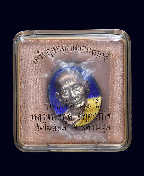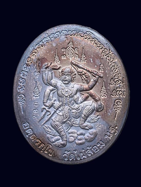 เหรียญเงินลงยาหนุมานแผลงฤทธิ หลวงพ่อพูล วัดไผ่ล้อม นครปฐม รุ่นแซยิด91ปี |