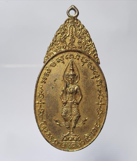 เหรียญพระสยามเทวาธิราชวัดป่ามะไฟ จ.ปราจีนบุรี เนื้อทองแดงกะไหล่ทองพิมพ์ใหญ่บล็อคหลังน้ำพุปี2518