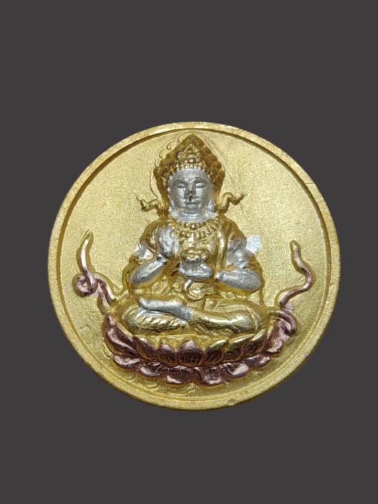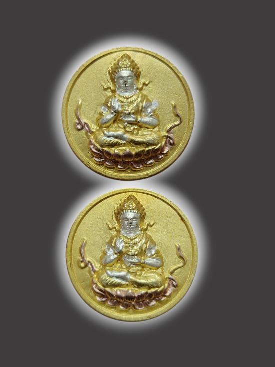 A2142.ชุดเซ็ต 2 เหรียญ พระอวโลกิเตศวรโพธิสัตว์ หลังไฉ่เซ่งเอี้ย เนื้อ 3 กษัตริย์ สวยมาก |