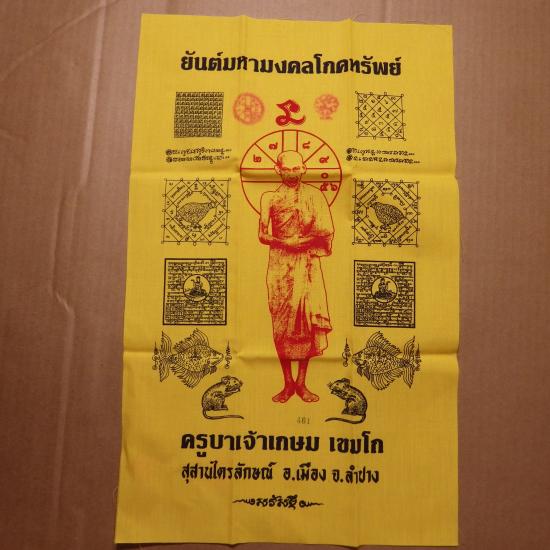 ผ้ายันต์มหามงคลโภคทรัพย์ หลวงพ่อเกษม ขนาด 11 X 17 นิ้ว ..เลข 461.....68.9.26 |