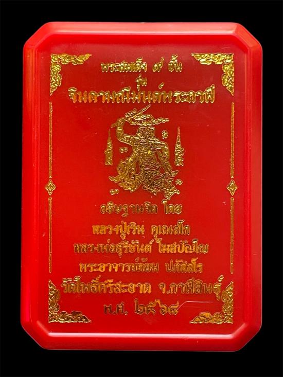 ..พระสมเด็จ 9 ชั้น รุ่น จินดามณีมนต์พระกาฬ หลวงปู่ศิลา วัดโพธิ์ศรีสะอาด จะกาฬสินธุ์ เนื้อสายรุ้ง หน้ากากปิดทองคำแท้ ตะกรุดทอง 6 ดอก หลังหนุมานขาว อกเพชรแดง No.55 พร้อมกล่องเดิมครับ