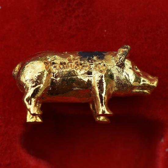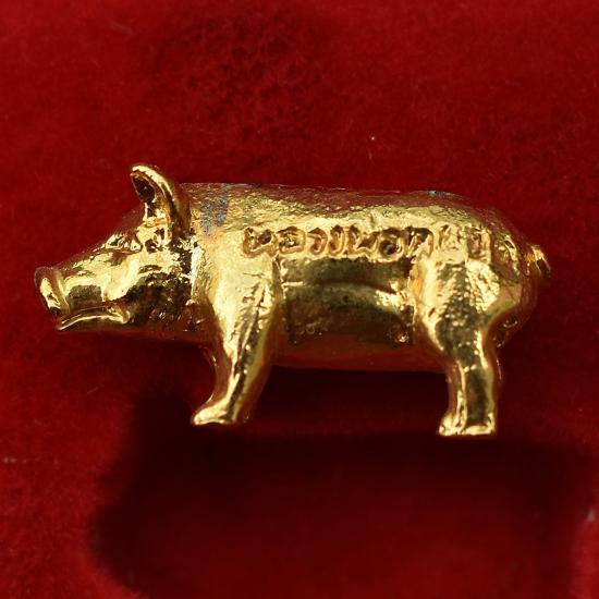 ชื่อพระเครื่อง *** เคาะเดียวแดง ทุกรายการ *** หมู เนื้อโลหะ หลวงพ่อหยอด วัดแก้วเจริญ สมุทรสงคราม มีกล่อง สภาพตามรูป (No.1)