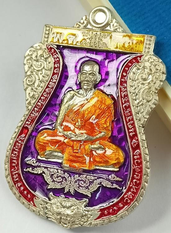เหรียญเสมา "สารพัดรวย" หลวงพ่อพัฒน์ วัดห้วยด้วน เนื้อเงิน ลงยาขุ้ยพื้นสีม่วง (น้ำหนัก 16.03กรัม) เบอร์ 125 พร้อมกล่องครับ