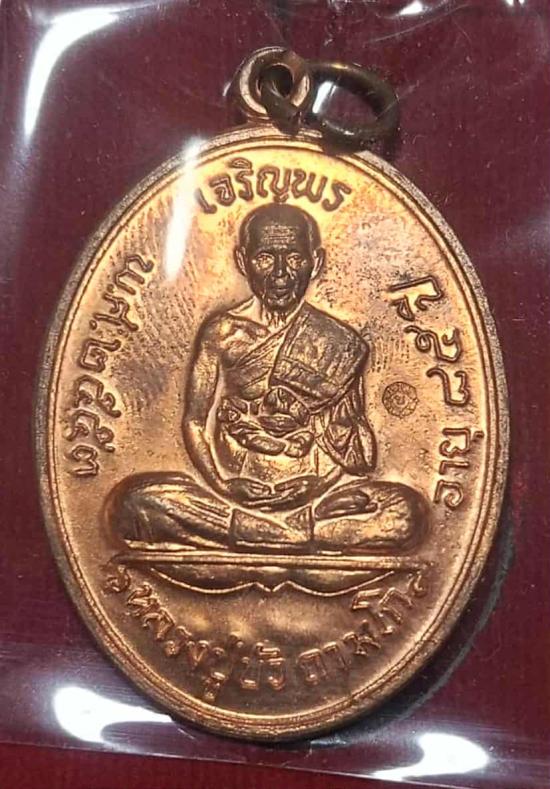 เหรียญเจริญพรบน เนื้อทองแดง บล็อคทองคำ หลวงปู่บัวถามโก วัดศรีบุรพาราม จ.ตราด 16 พฤศจิกายน 2553 หมายเลข "3454" ครับ พร้อมกล่องเดิมครับ |