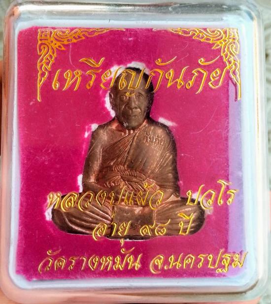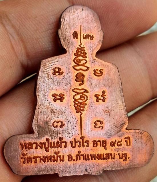 หลวงปู่แผ้ว ปวโร รุ่นกันภัย อายุ 98 ปี วัดรางหมัน พุทธาภิเษก วันที่ 9 เดือน 9 ปี 2563 เนื้อทองแดง พร้อมกล่อง |
