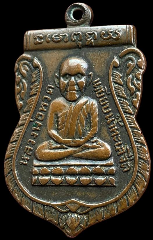 เหรียญเสมาหัวโต หลวงปู่ทวด-หลังม.มหาธาตุ ออกวัดมหาธาตุ ปี 2505 กทม. เนื้อทองแดงกะไหล่ทอง พอสวยกะไหล่ทองตามซอก นิยมสุดในรุ่น