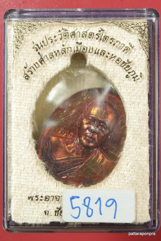 เหรียญห่วงเชื่อม หลวงพ่อทอง รุ่นประวัติศาสตร์ไตรภาคี ปี 2558 เนื้อทองแดงมันปู มีจาร หมายเลข 5819 |
