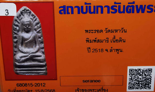 พระรอด วัดมหาวัน พิมพ์สมาธิ(มีหน้าตา) เนื้อดิน ปี2518 จ.ลำพูน + บัตรG-pra สภาพเดิมค่ะ |