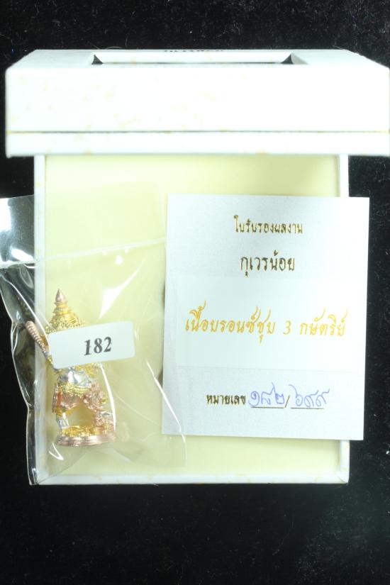 ** นิยมโคตรสวย เลขสวยเบอร์ 182 ศิลป์สวยๆ พุทธคุณแน่นๆ พิธีใหญ่ ราคาจองมา 999 **กุเวรน้อย รุ่น ชนะมารบันดาลทรัพย์ (ลอยองค์) ข้าจะปราบหมู่มาร และจะบันดาลทรัพย์ให้พวกเอ็ง เนื้อ บรอนซ์ ชุบ 3 กษัตริย์ |