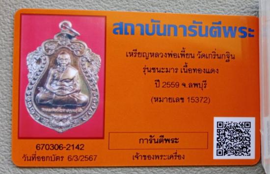 เหรียญหลวงพ่อเพี้ยน วัดเกริ่นกฐิน จ.ลพบุรี ปี2559 รุ่นชนะมาร เนื้อทองแดง หมายเลข กล่องเดิม พร้อมบัตรรับรอง ตามรูปครับ