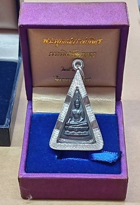 พระสมเด็จจิตรลดาโครงการหลวง เนื้อเงิน พิมพ์เล็ก ในหลวงครองราชย์ครบ 50 พรรษา ปี 2539 กล่องเดิม พร้อมเลี่ยมกรอบมือหนึ่งเงินแท้ งาน 92.5% ขึ้น กรอบหนา เดินทรายตัดขัดเงา classic.. |