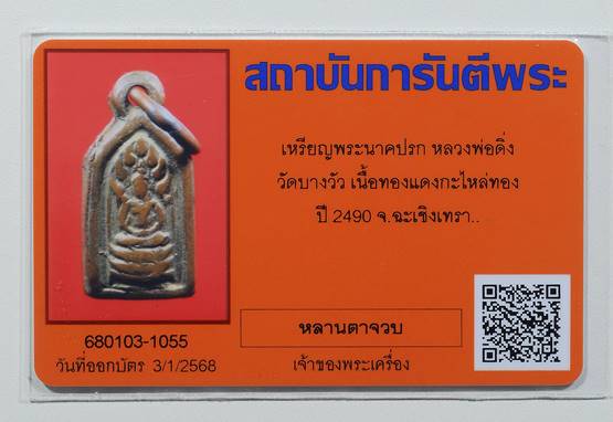เหรียญพระนาคปรก หลวงพ่อดิ่ง วัดบางวัว ปี2490 ห่วงเชื่อมกะไหล่ทองครับ