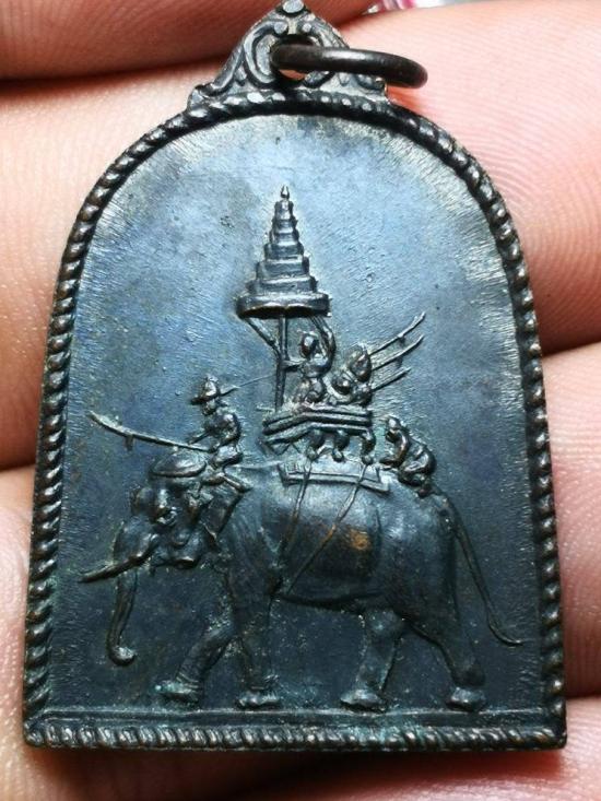 เหรียญสมเด็จพระนเรศวรมหาราช ปี 2514 หลังช้างยุทธหัตถี เนื้อทองแดงรมดำสภาพตามรูปราคาเบาๆ |