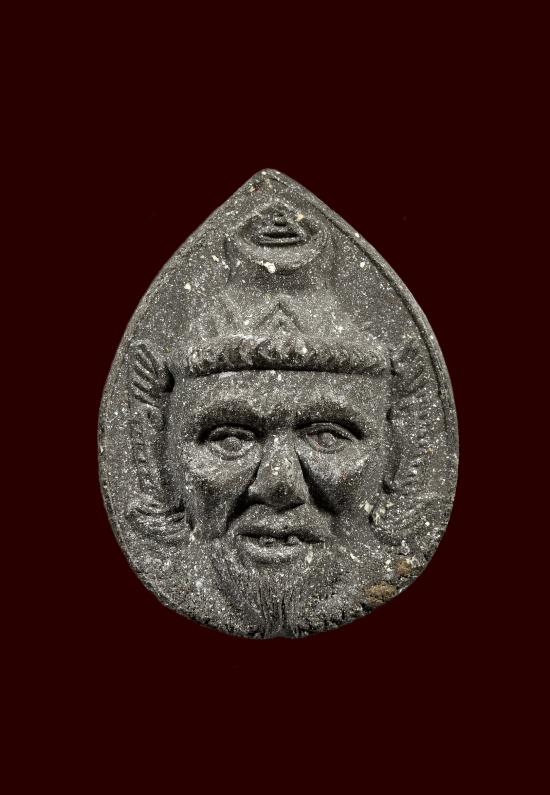 เศียรพ่อแก่ฤาษี รุ่นแรก หลวงพ่อสาคร วัดหนองกรับ ปี 2530 เนื้อดินเจ็ดโป่ง |