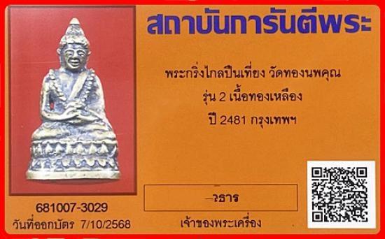 กริ่งไกลปืนเที่ยง ปี 2481 เจ้าคุณศรีสนธิ์วัดสุทัศน์เจ้าพิธีเททอง....บัตรgpra.. |