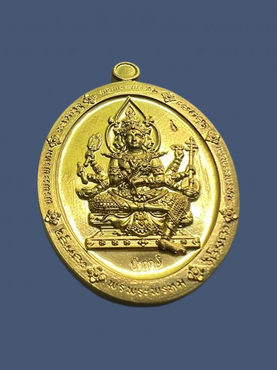 เหรียญพรพระพรหม 168 พิมพ์รูปไข่ เนื้อทองฝาบาตร ตอกนำฤกษ์ หลังอุดมวลสาร จาพนม ยีรัมย์จัดสร้าง