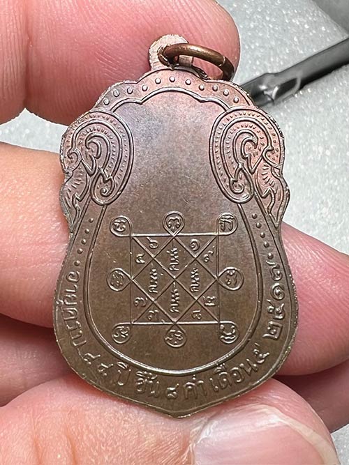 เหรียญเสมาหลังยันต์ตรี ปี17 เนื้อนวะ(แก่เงิน) บล็อก5จุดหลังแตก สภาพสวย ผิวเดิมๆ หน้าตาติดชัด จมูกโด่งๆ พร้อมบัตรรับรองพระแท้ |
