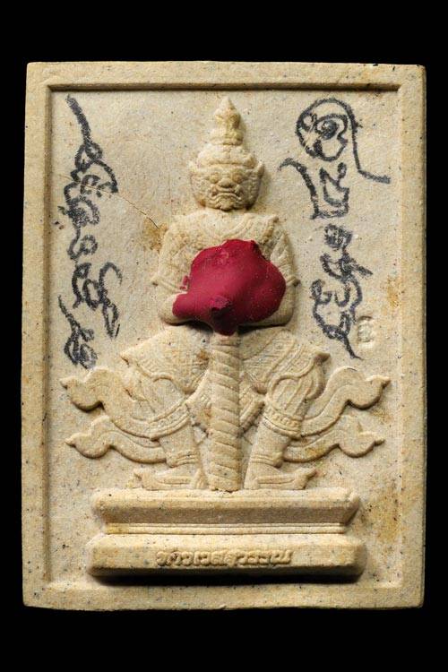 (วัดใจ) ท้าวเวสสุวรรณ เนื้อผงส้มป่อย พิมพ์กลาง หลวงพ่ออิฏฐ์ วัดจุฬามณี จ.สมุทรสงคราม มีเจิมแดง จารดินสอ หน้า-หลัง