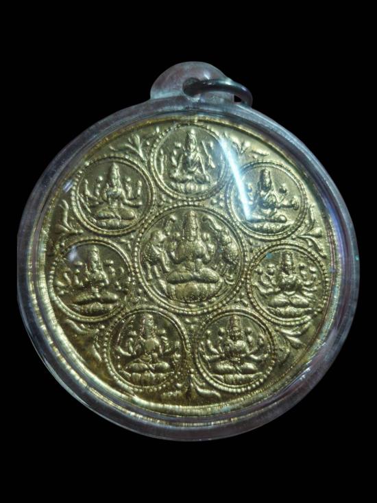 เหรียญกลมใหญ่ ขนาด 4ซม.(( พิมพ์ 8 ปาง )) พระแม่ลักษมี ออกวัดแขก กะไหล่ทองสวยเดิม พร้อมเลี่ยม
