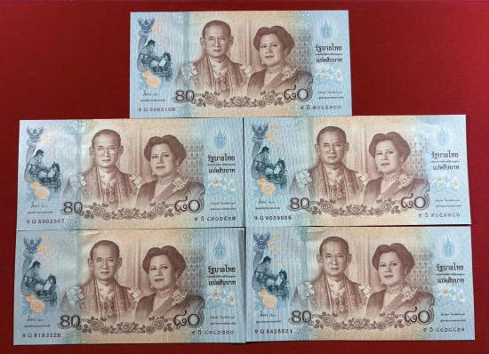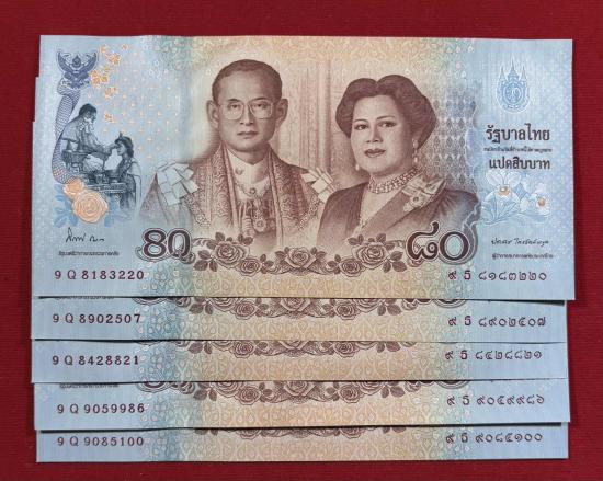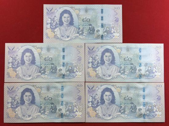 ธนบัตร 80บาท ที่ระลึก 80พรรษา พระราชินี จำนวน 5 ใบ+ปก สภาพสวยตามรูป