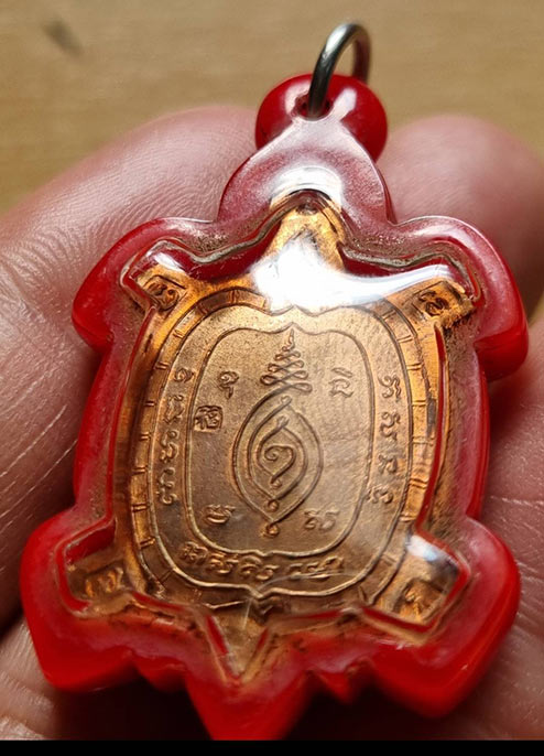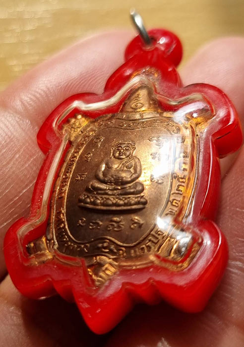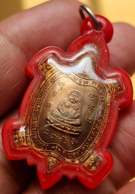 เหรียญพญาเต่าเรือนหลวงปู่หลิว ไตรมาสพิมพ์เล็ก เนื้อทองแดง นิ้วชิด