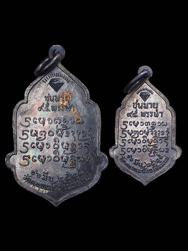 ###### เหรียญชนมายุ 95 พรรษา หลวงปู่แหวน สุจิณโณ ปี 2525 เนื้อเงิน พิมพ์ใหญ่+เล็ก สวยเดิม ######