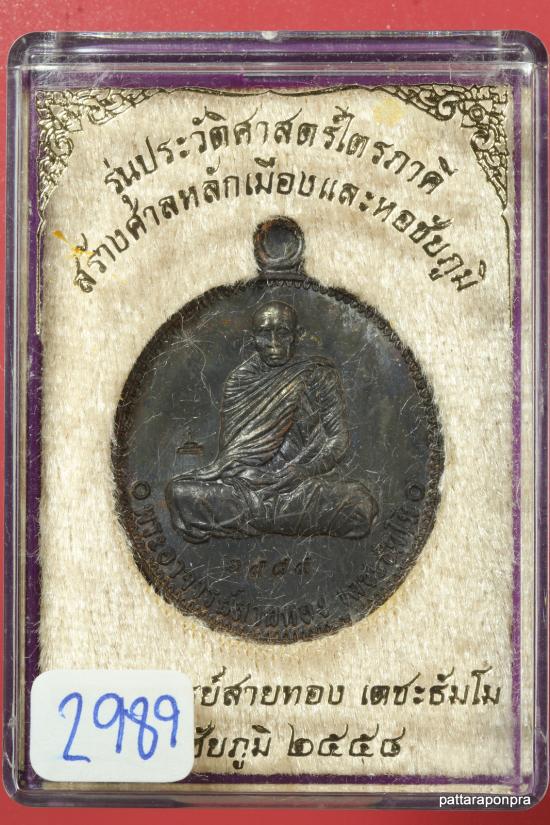 เหรียญหลวงพ่อสายทอง รุ่นประวัติศาสตร์ไตรภาคี ปี 2558 เนื้อทองแดงรมดำ หมายเลข 2989 |