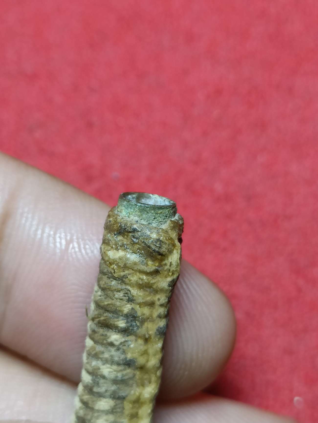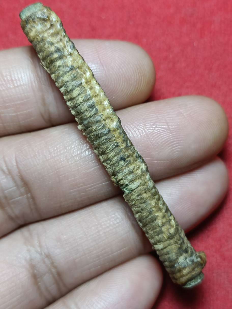 ตะกรุดเก่าพันด้วยสายสิญย์เก่าเชือกป่น