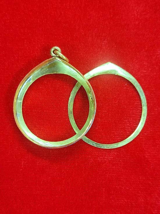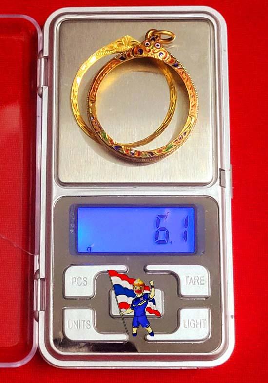 (เคาะเดียวแดง) กรอบทองคำแท้ ทรงกลม (ลงยา ห่วงเชื่อม) น้ำหนัก 6.1 กรัม เปอร์เซ็นสูง 81.18