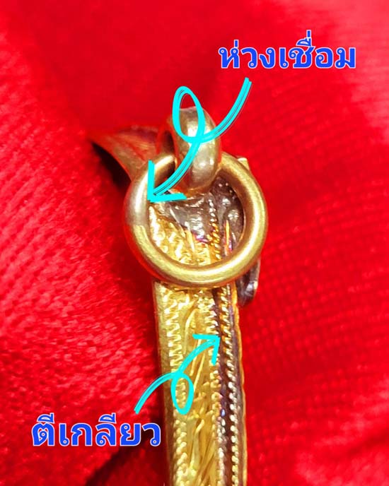 น้ำหนักประมาณ 6.1 กร้ม ลงยา ห่วงเชื่อม ตีเกลียวข้าง สภาพนางฟ้า