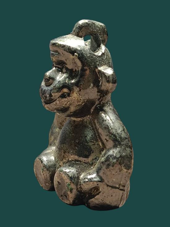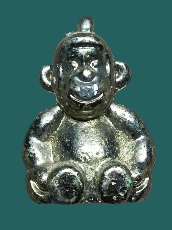 ชื่อพระเครื่อง @@วัดใจ100@@รูปหล่อลิงนั่งเนื้อตะกั่วอาบเงินไม่ทราบที่คับผม