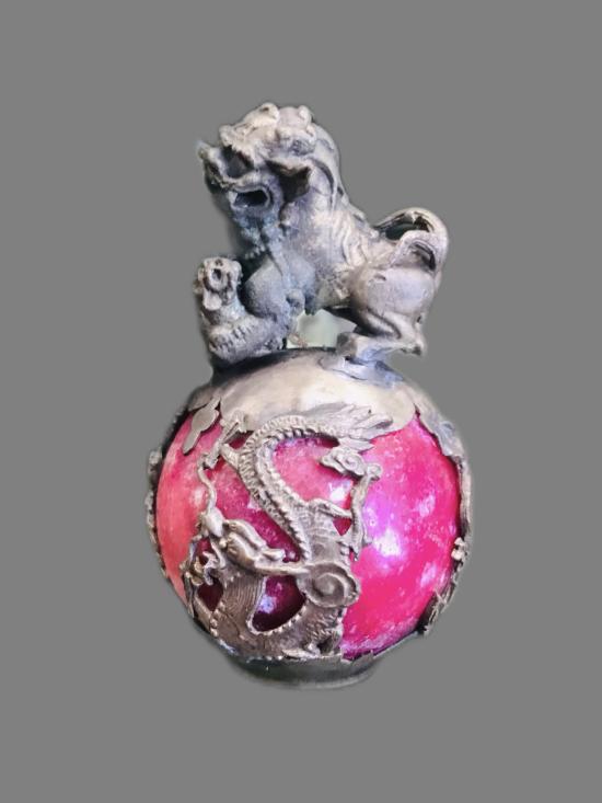 ชื่อพระเครื่อง ๙๙๙ สิงห์เหยีบมังกร บนหินสีชมพู ไม่ทราบหินอะไร เข้มแข็งดุดัน ๙๙๙