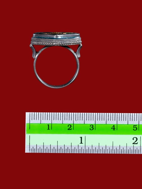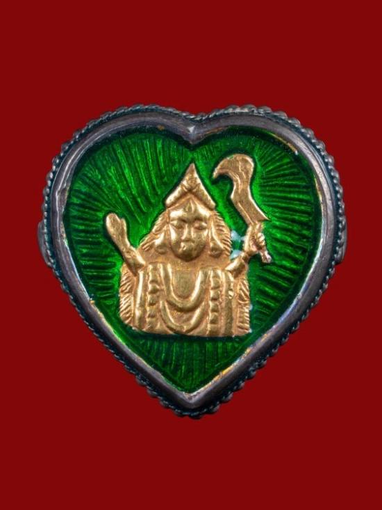แหวนเงินลงยาสีเขียว***หน้าทองคำ***พระแม่อุมา ***ไม่ทราบที่