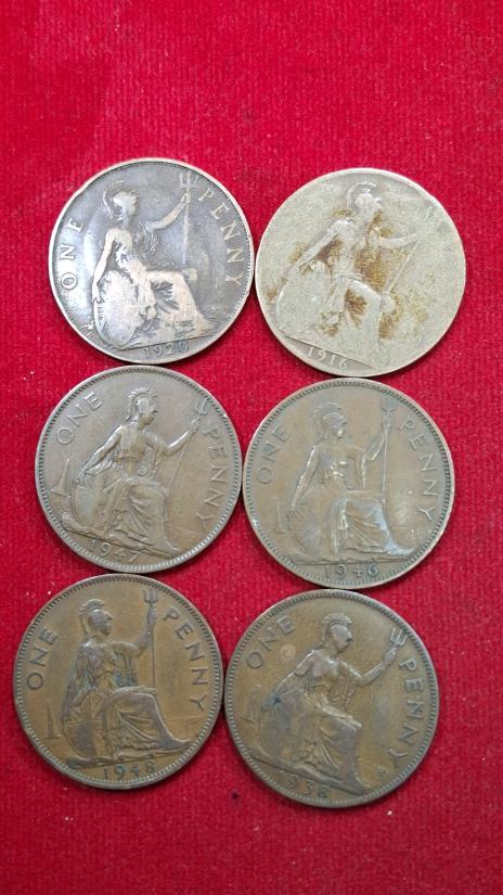 เหรียญ 1 เพนนี (One Penny) ของสหราชอาณาจักร ปี 1916,1920,1947,19461948,1938 ซึ่งเป็นเหรียญในยุคของสมเด็จพระเจ้าจอร์จที่ 6 รวม6เหรียญ