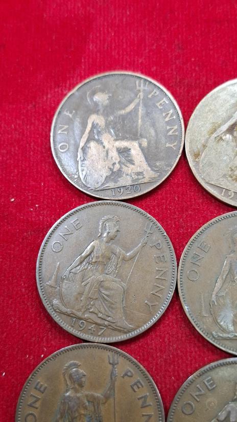 เหรียญ 1 เพนนี (One Penny) ของสหราชอาณาจักร ปี 1916,1920,1947,19461948,1938 ซึ่งเป็นเหรียญในยุคของสมเด็จพระเจ้าจอร์จที่ 6