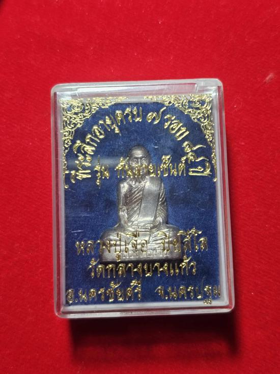 ศักดิ์ศรีเนื้อเงิน รูปเหมือนปั๊ม หลวงปู่เจือ วัดกลางบางแก้ว รุ่นก้นลายเซ็น 7 รอบ กล่องเดิม