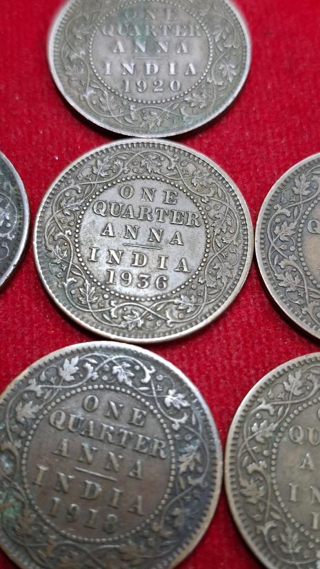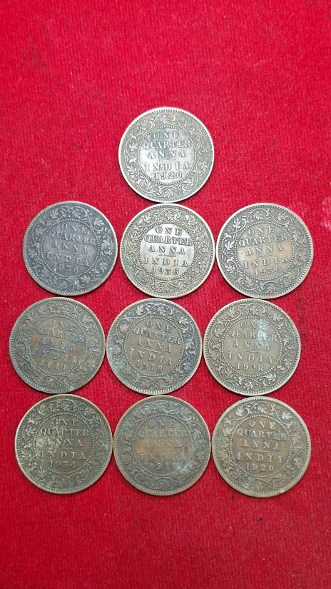 เหรียญ "One Quarter Anna" ของบริติชอินเดีย (British India) ทั้งหมด 10เหรียญ |