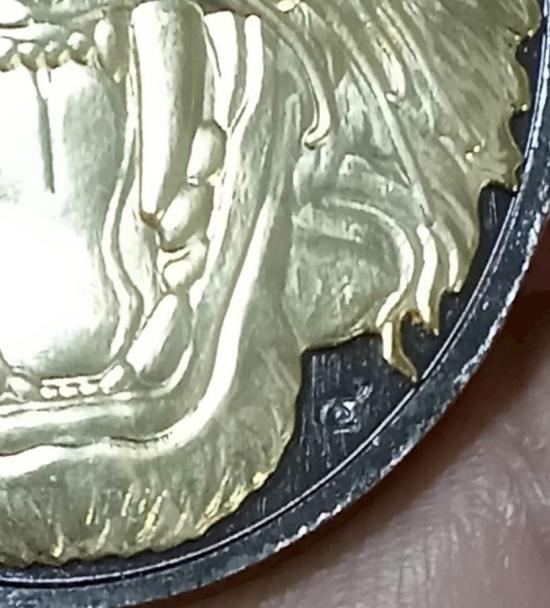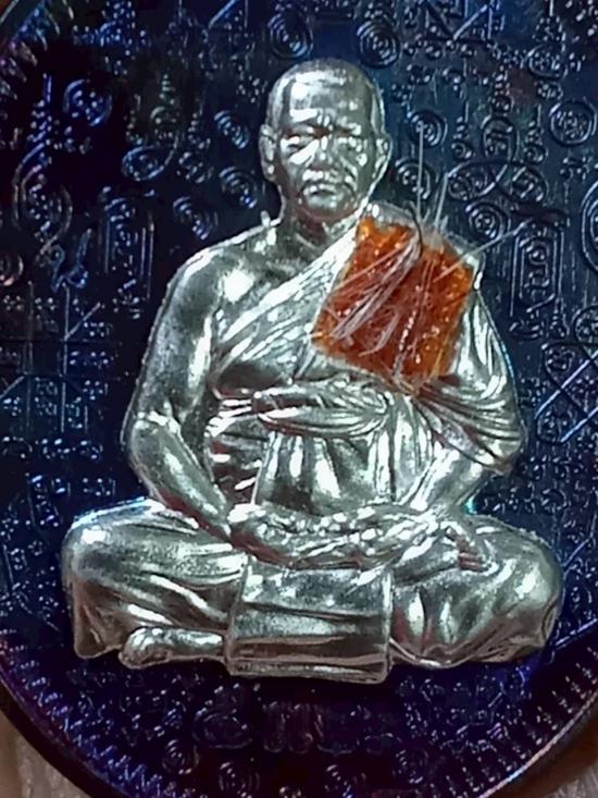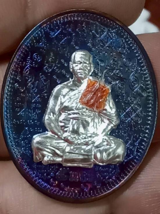 เหรียญรุ่น 5 แชะศัตรูพ่าย หลวงพ่อประสูติ ปิยธัมโม วัดถ้ำพระพุทธโกษีย์(วัดในเตา) จ.ตรัง เนื้อนวะรุ้งหน้ากากเงิน ติดจีวร ติดเกศา หลังหน้ากากชุบทอง จอกโค๊ต กรรมการ ตอกหมายเลข 4 |