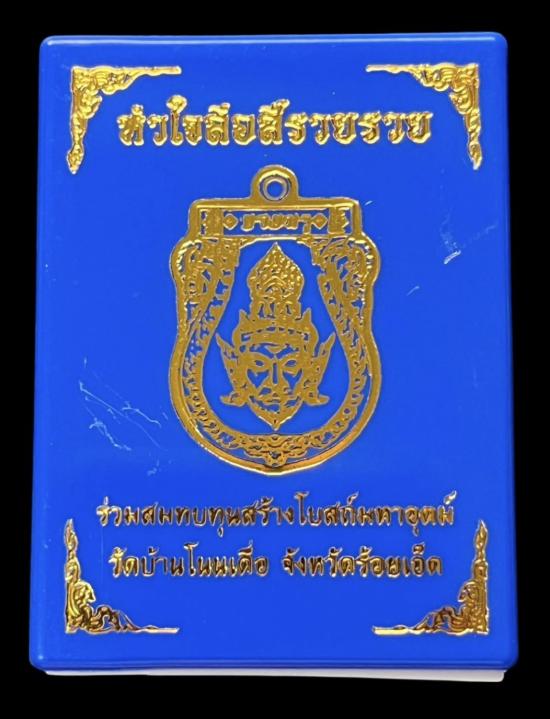 ..เศียรพ่อแก่ รุ่น หัวใจลือสีรวยรวย บูชาครู หลวงปู่ศิลา วัดโนนเดื่อ จ.ร้อยเอ็ด เนื้อทองแดงซาติน ลงยาม่วง ขอบเขียว บนขาว No.8 พร้อมกล่องเดิมครับ |