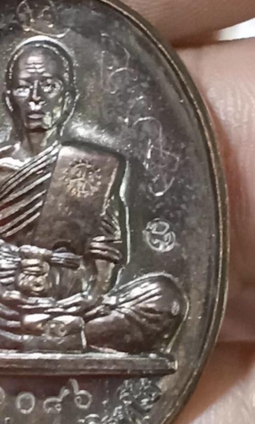เหรียญย้อนยุคปี 2519 หลวงพ่อคูณ รุ่นพุทธคูณสยาม มหาลาภ ปี 2545 เนื้อรมมันปู มีจารด้านหน้าและหลัง ตอกโค๊ต 4 จุด ตอกหมายเลข 1086 |