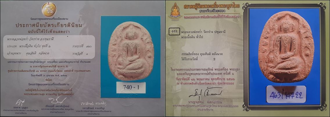 ใบประกาศใบที่ 1 ติดรางวัลที่ 1 งานสมาคมผู้นิยมพระเครื่องพระบูชาไทย จัดขึ้นที่ศูนย์ราชการแจ้งวัฒนะ งานประกวดจัดโดย นิตยสารสุดยอดพระเครื่องเมืองสยาม จัดขึ้นเมื่อวันที่ 7 เมษายน 2562