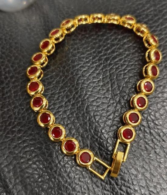 เทขาดทุน+ กำไลแขนทับทิมยาว 7.นิ้ว งานจิวเวลลี่ชุบทองแท้ |