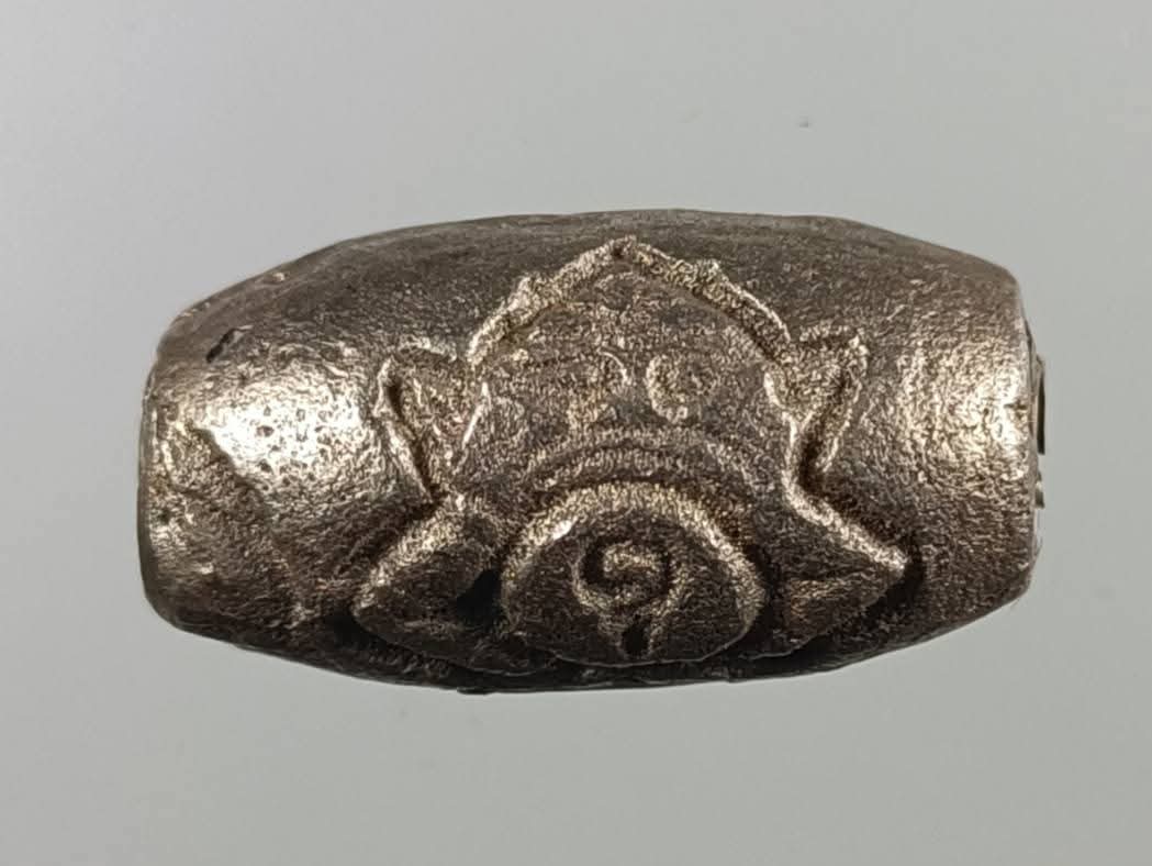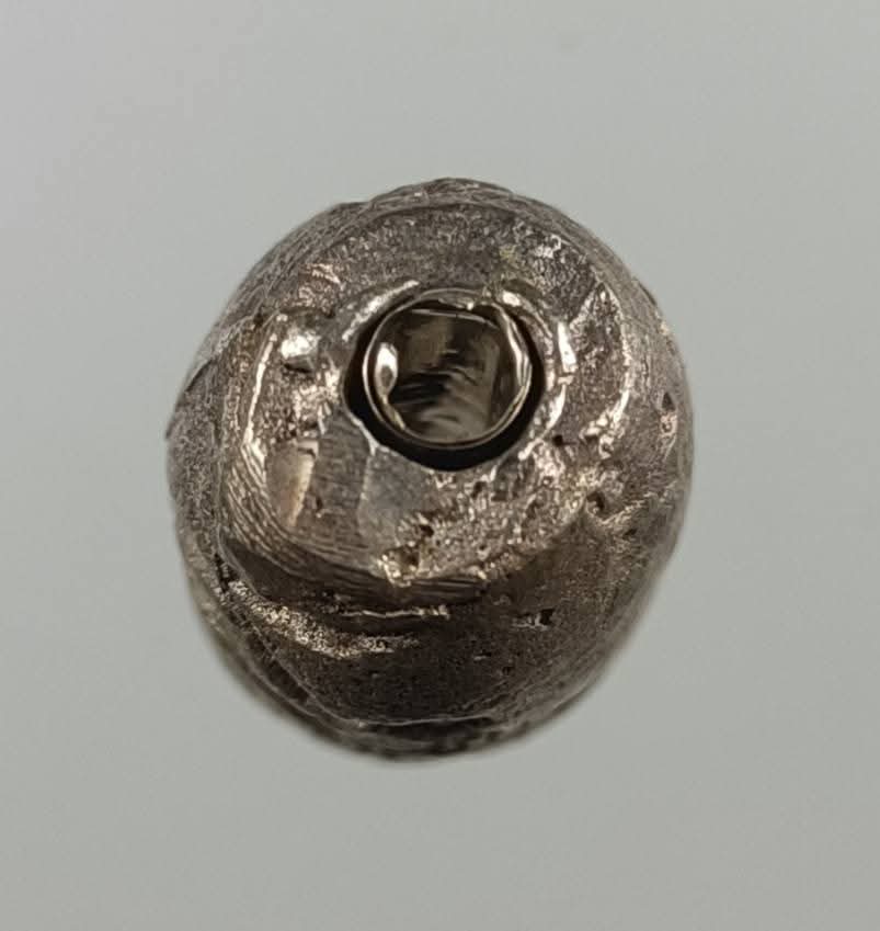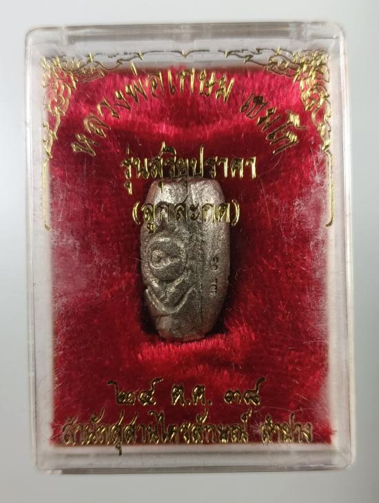 ลูกสะกด ยันต์พระราหู รุ่นสุริยุปราคา ปี 2538 หลวงพ่อเกษม เขมโก เนื้อชินปรอท ด้านในฝังตะกรุด
