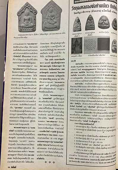 ขุนแผนผงพรายกุมาร หลวงพ่อสาคร รุ่นนางบัวคลี่ สร้างปี 2544 เป็นพระขุนแผนผงพรายกุมาร ที่หลวงพ่อสาคร วัดหนองกรับ เสกนานที่สุดถึงในบรรดาพระขุนแผนของท่าน สร้างตามตำราหลวงปู่ทิมแบบสมบูรณ์ โดยเฉพาะพระเนื้อขาวล้วน ไม่ฝังตะกรุด ท่านเสกนานหลายปีเลยทีเดียว ข้อมูลจากหนังสือ ร่มโพธิ์ ฉบับ 115 เดือน กรกฏาคม 2544 |