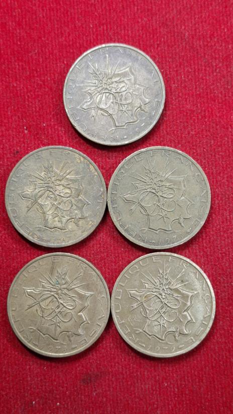 เหรียญ 10 ฟรังก์ที่ผลิตในช่วงปี 1974-1987 เป็นเหรียญที่ทำจากทองแดง-อะลูมิเนียม-นิกเกิล