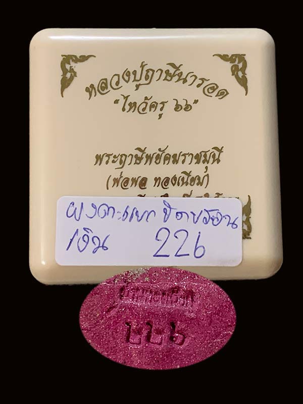 ปู่ฤาษีนารอด ไหว้ครู ๖๖ พระฤาษีพยัคฆราชมุนี พ่อพล ทองเนียม เนื้อผงตะแบกปัดบรอนเงินตะกรุดคู่ หมายเลข ๒๒๖ |
