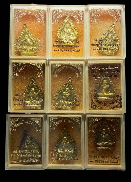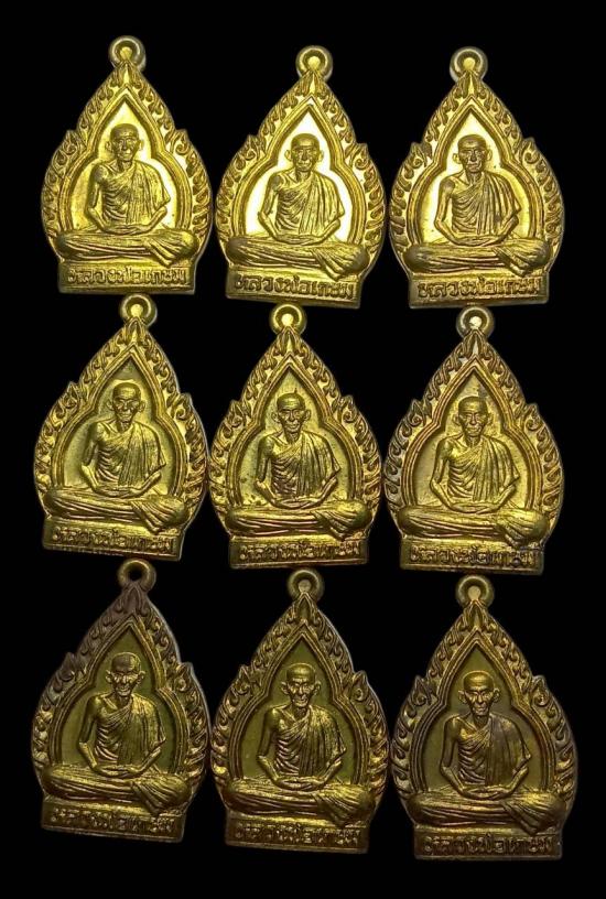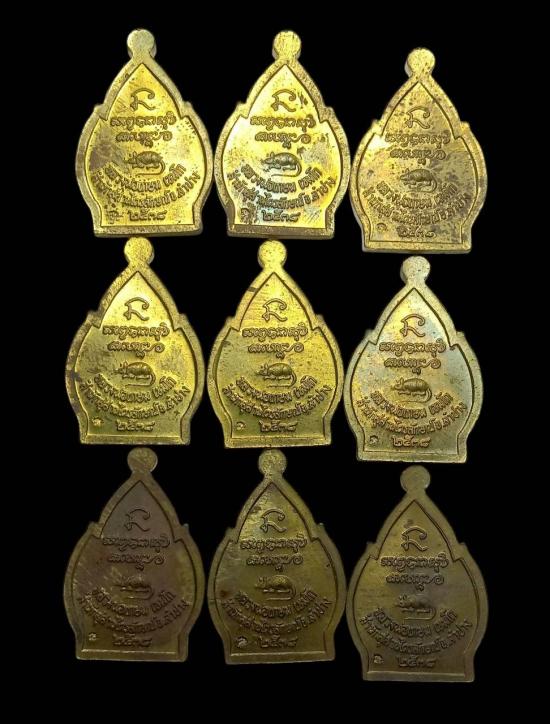เคาะเดียวแดง ใบสาเก หลังหนู เนื้อทองเหลือง ปี 38 พร้อมกล่อง (จำนวน 9 เหรียญ)